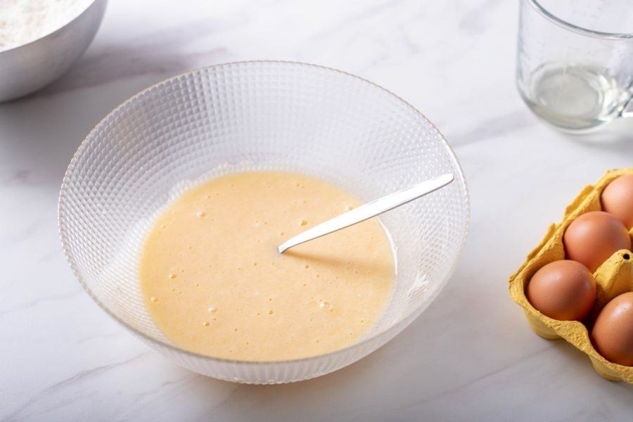 - Mix the eggs, vanilla sugar and sugar to a creamy mixture