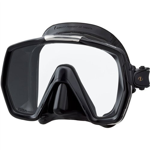 This mask is one of the best in the Tusa range, and well-known amongst divers. It comes in several different color options if you want to accessorize your dive outfit. It also has a buckle system that rotates 180 degrees for ease of comfort and adjustability. The frame is large and designed to help you see as much as possible, with a wide field of vision. The strap angle adjuster also has five positions it can be set to, so you get an even more bespoke fit and avoid discomfort or water leaking due to improper use. The skirt is round-edged and made of versatile silicone.
