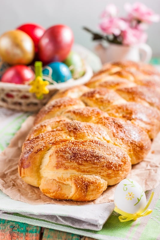 - Kozunak Easter Bread: Kozunak is sweet plaited bread traditionally baked at home on Maundy Thursday. Make the dough with flour, yeast, eggs, sugar, butter, and milk, stir in lemon and vanilla essence to flavor and finally add chopped nuts and rum-soaked raisins before baking.